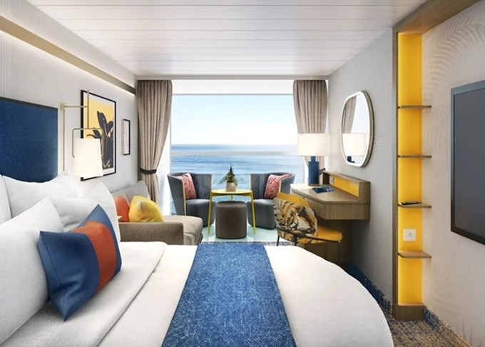 SF - Surfside Family Suite 25 m² + 5 m² balkón s výhľadom na štvrť Surfside. 9,10,11. paluba vzadu. Max 4 osoby (2 dospelé a 2 deti). Výhody Royal Suite Sky class. | 9 045 € 3 015 € za osobu |